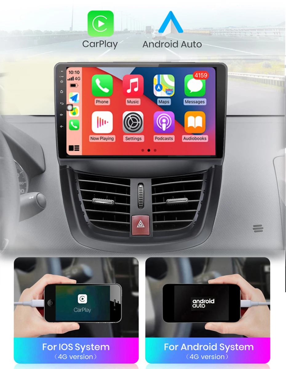 2din 4+64G Android Auto car radio multimedia playerCarplay GPS navigation NO DVD for Peugeot 207 CC 2006 2007 2008 2009-2015