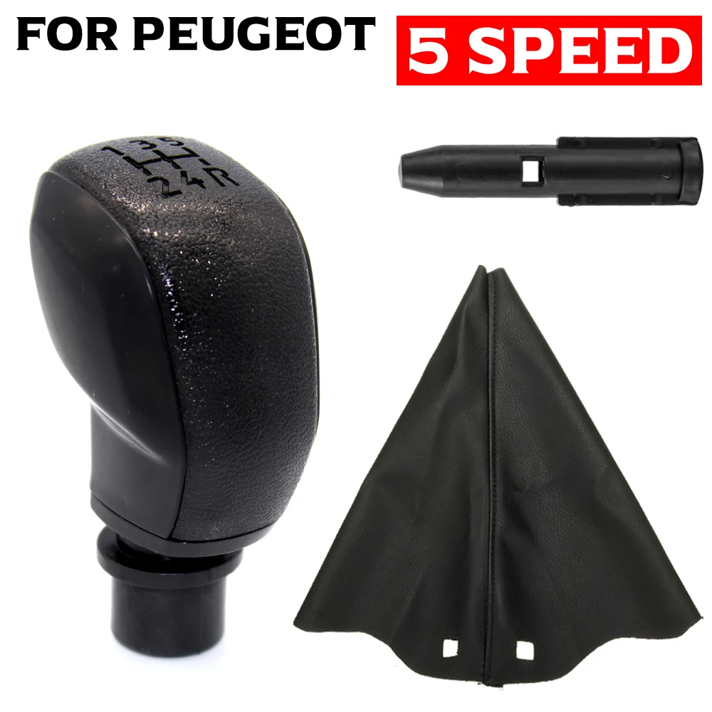 New Chrome Car ABS Gear Shift Knob Manual 5 Speed For Peugeot 106 206 306 406 107 207 307 407 301 308 2008 With Gaiter Cover
