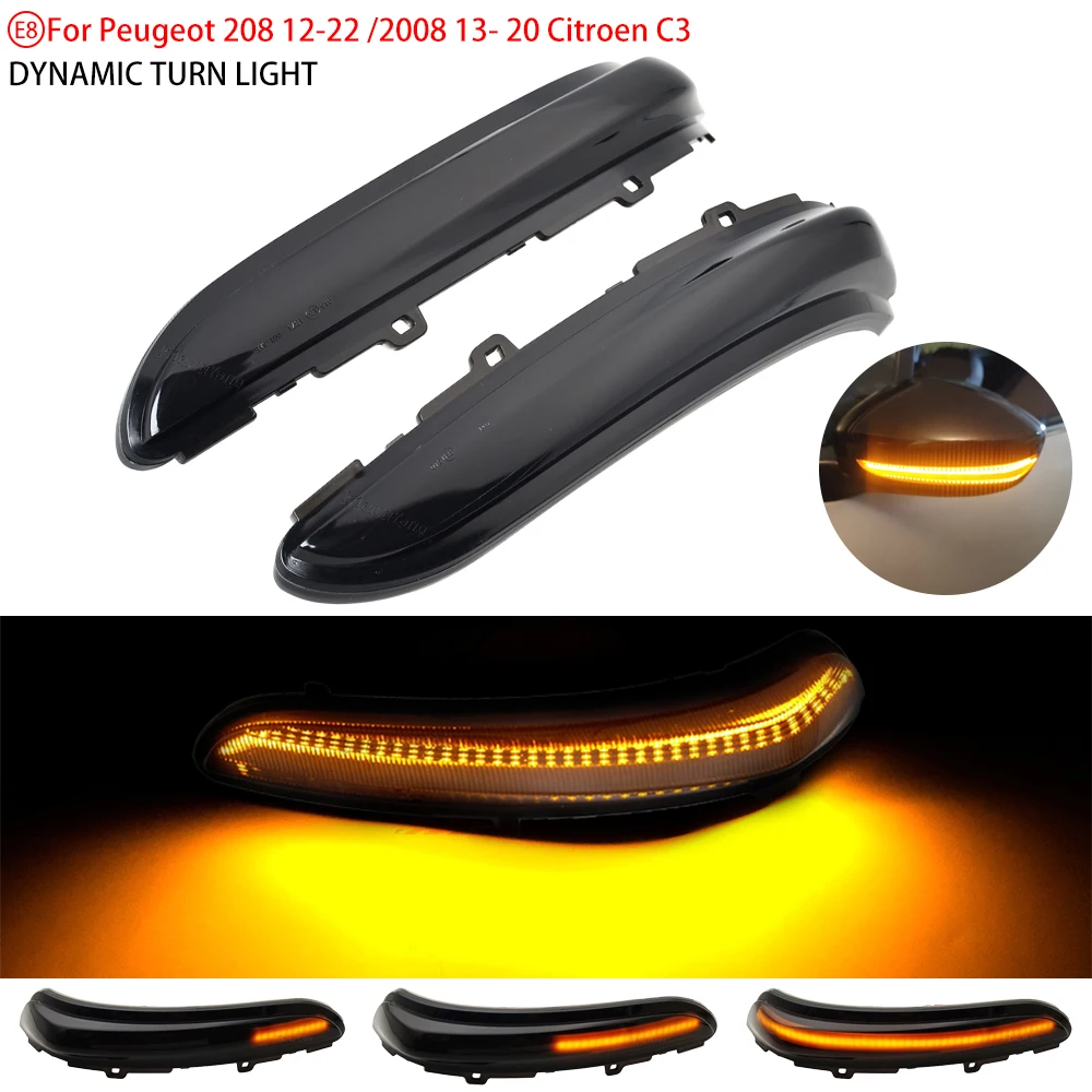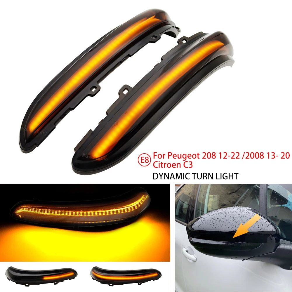 Sequential Flashing Blinker For Peugeot 2008 208 2Pcs LED Dynamic Turn Signal Light Rearview Flashing Mirror Lamp For Citroen C3