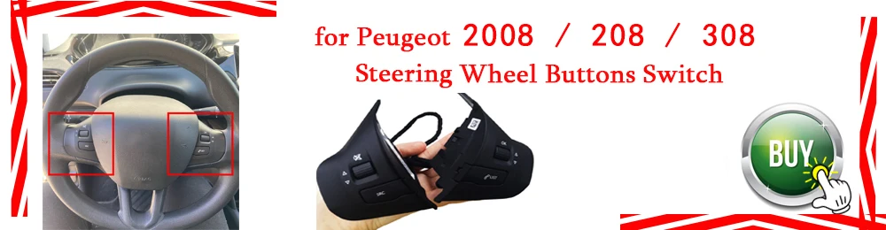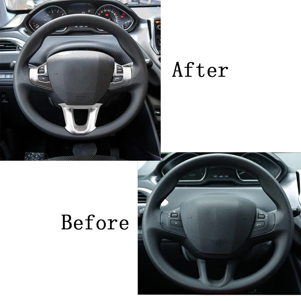 Steering wheel cover button trim stickers logo emblem badge chrome decoration accessories for Peugeot 2008 208 2014 – 2018
