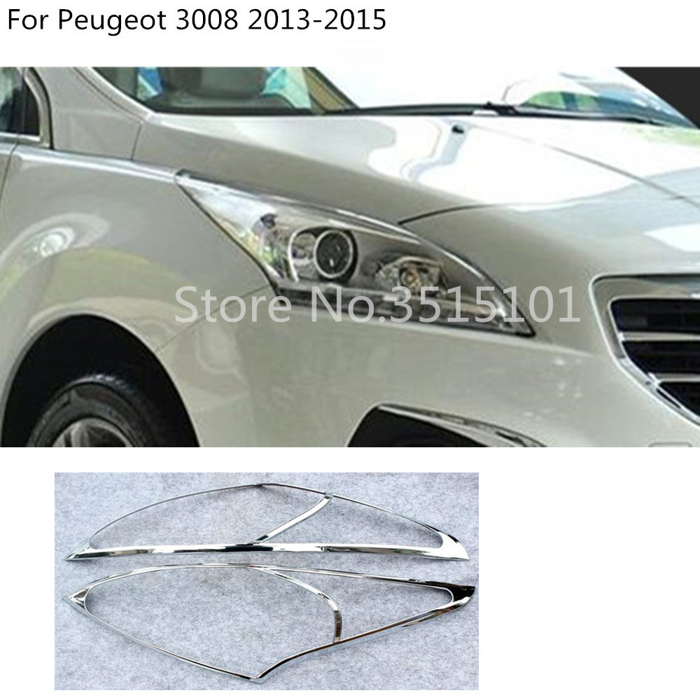 Car Body Front Head Light Lamp Hoods Molding Frame ABS Chrome Trim Panel Stick Hood For Peugeot 3008 2013 2014 2015 2016 2017