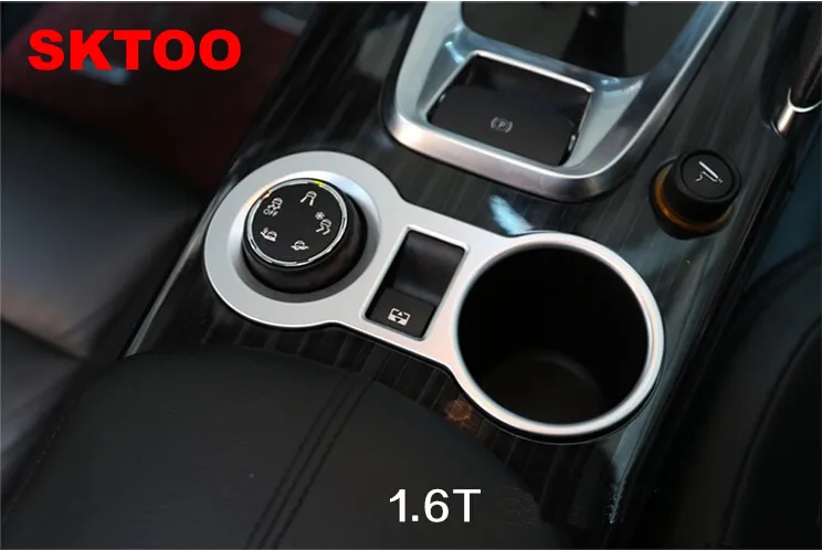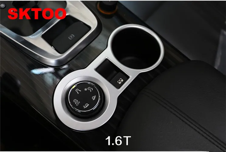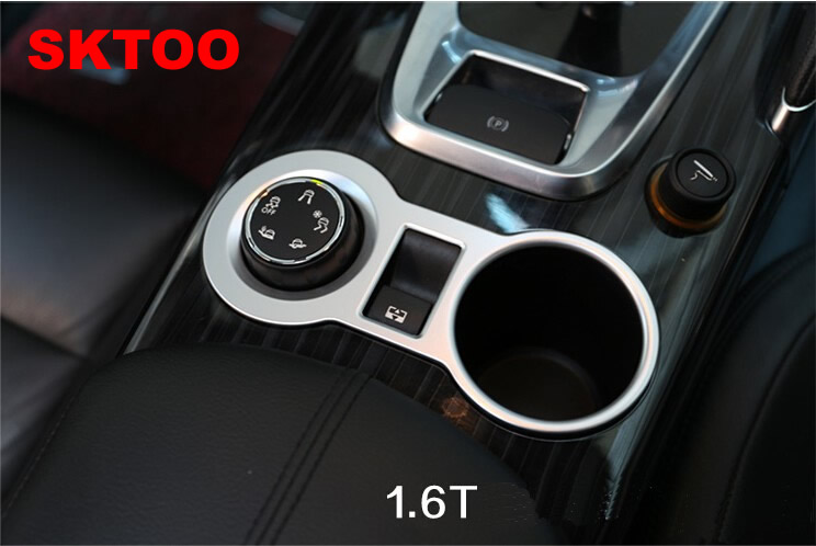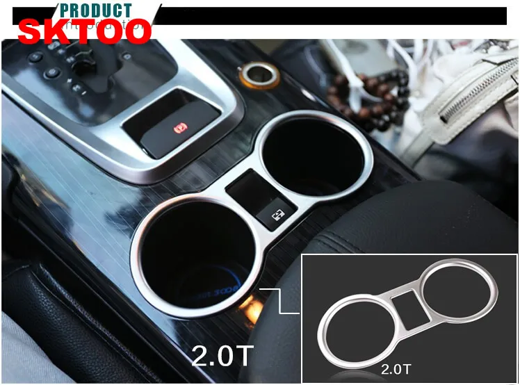 SKTOO Car styling ABS plating Water cup holder trim car cover interior chrome trim molding strip for peugeot 3008 1.6T 2.0T