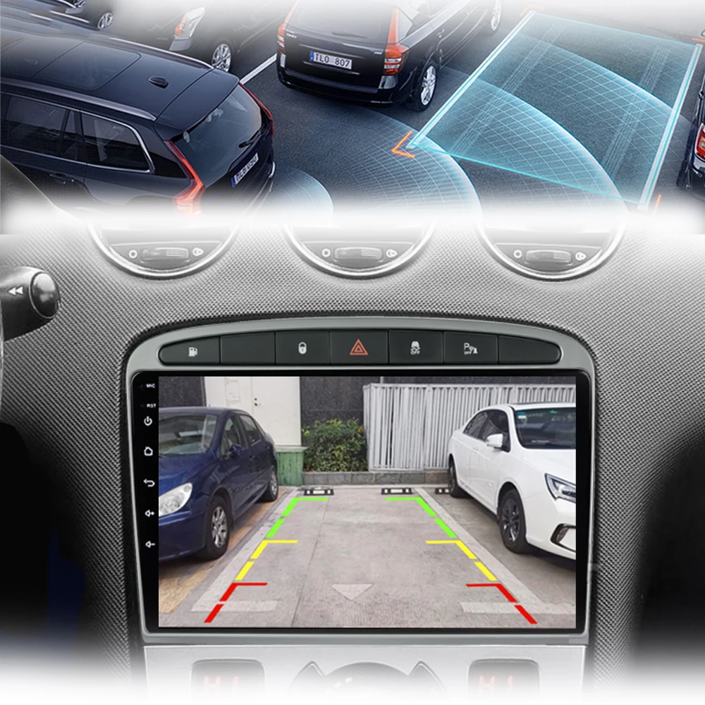 When the car in Reverse Gear, this car DVD will automatically switch to the back-up camera image view with parking line.