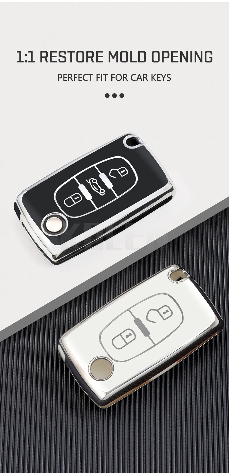 TPU Car Flip Key Case Cover Shell Fob Keyless For Peugeot 107 207 307 308 407 607 3008 5008 For Citroen Xsara Picasso C5 C6 C8