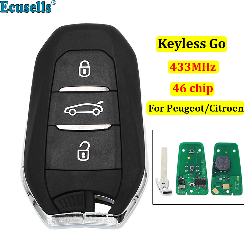 DSKeyless gehenSmart-remote-key 3 tasten 433MHz 7945chip 46 chip für Peugeot 508 FÜR Citroen C4 mit notfall schlüssel HU83