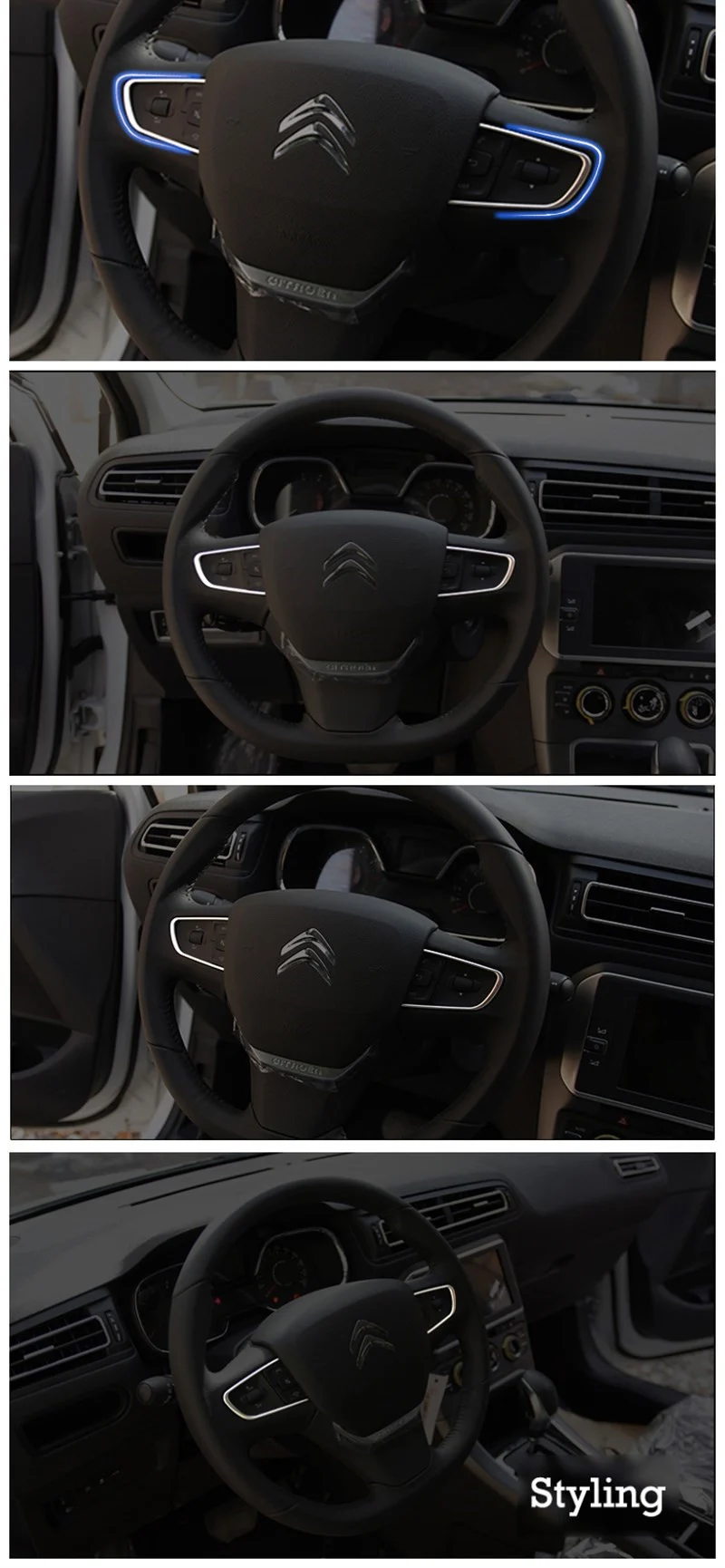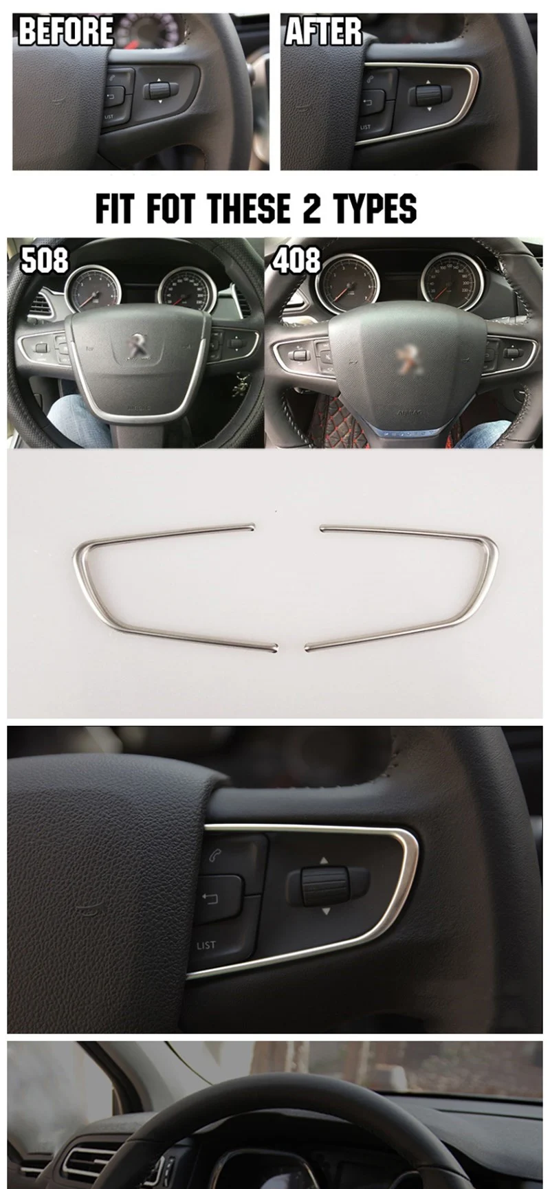 2pcs Steering Wheel Trim Cover Fit For Peugeot 508 2011-2016 408 2014-2020 Chrome Center Console Inner Styling Stainless Bezel