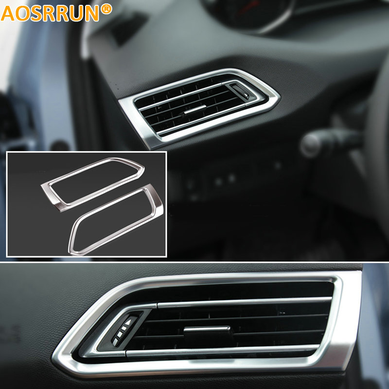 AOSRRUN Car Accessories LR Air-Conditioning Outlet Cover ABS Chrome Plate For Peugeot 308 T9 SW Rear View 5door 2015 2016 Trim