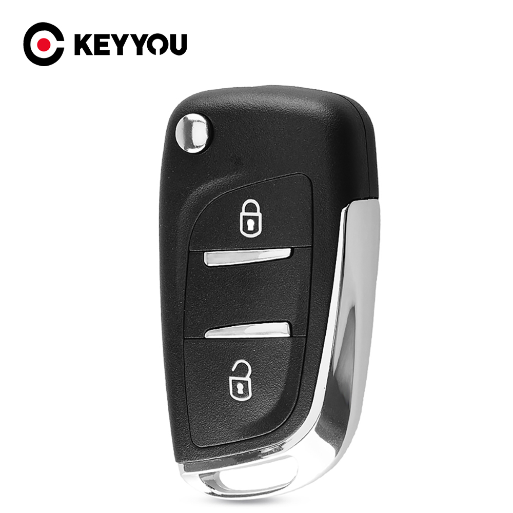 KEYYOU 5x Modified Flip Folding Key Shell For Peugeot 306 407 807 partner Remote fob Case Chrome VA2 Uncut Blade 2 Button